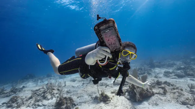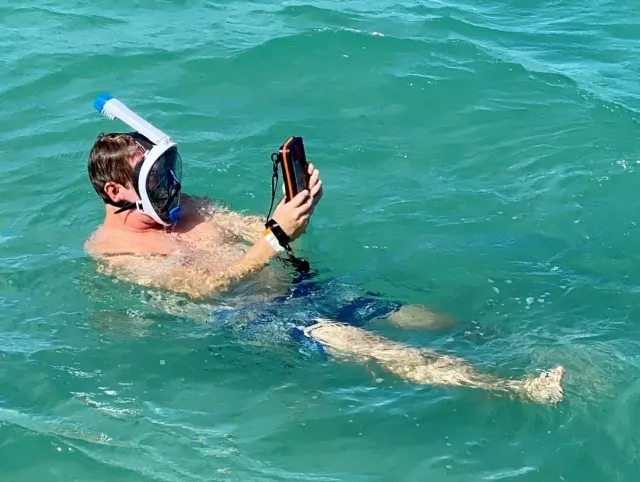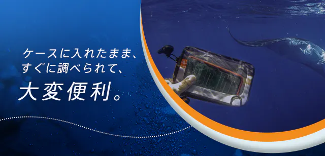 海の生物や釣った魚についてもスマホをケースに入れたまま、すぐに調べられて大変便利。