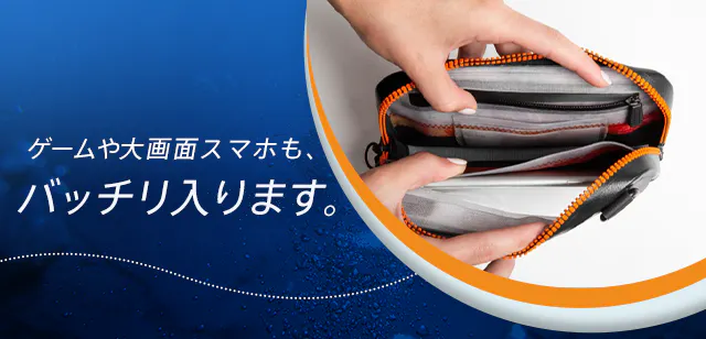 かなり余裕があるので、ゲームや動画視聴用の大画面スマホもバッチリ入ります。