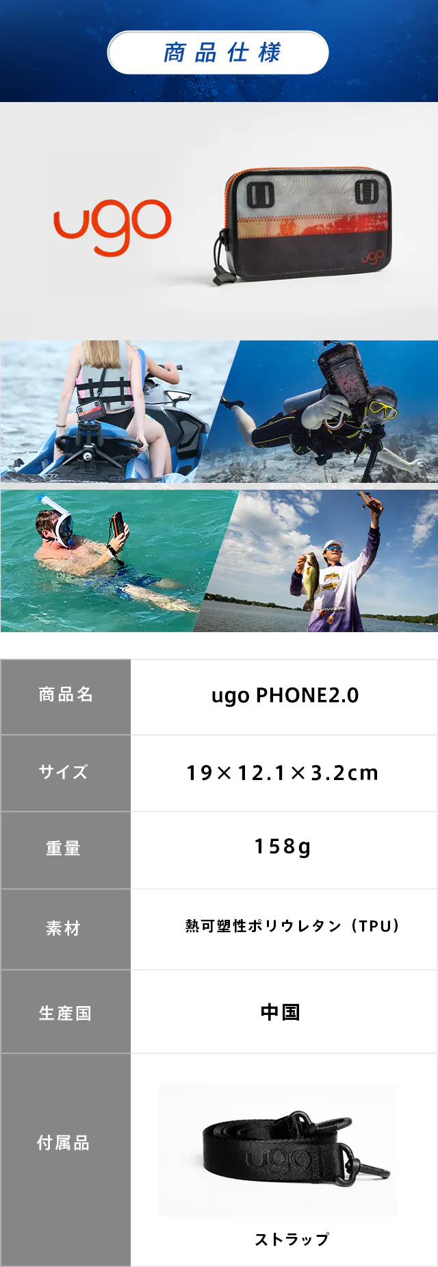 ugo製品は皆様の大切な貴重品を徹底的に守り、気兼ねなくアクティビティを楽しみたい方にぴったりで、お客様から「こんな製品を探していた」と言っていただくことがよくあります。様々な環境、季節で使える「PHONE 2.0」をぜひ試してみてください!