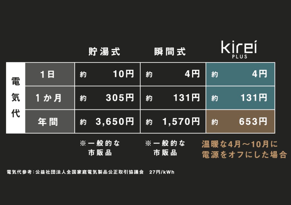 意外と盲点だった洗浄便座の電気代。水圧で洗浄機能を使える『Kirei PLUS』ならではの機能です。