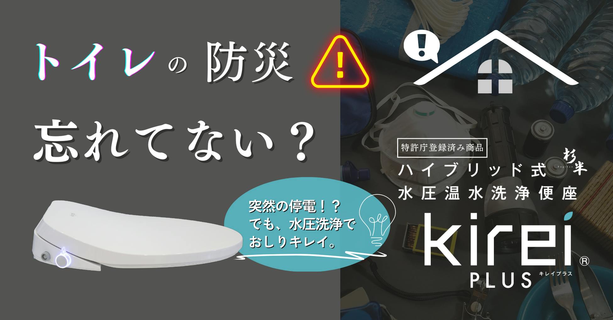 「災害対策」も「環境対策」も必須な、これからの日本の新常識としてハイブリット式水圧温水洗浄便座『Kirei PLUS』という新製品はいかがでしょうか?