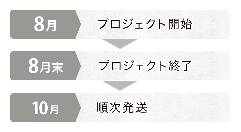 ※ご支援の数が想定を上回った場合、工場の製造の都合上により、出荷時期が遅れる場合がございいます。
