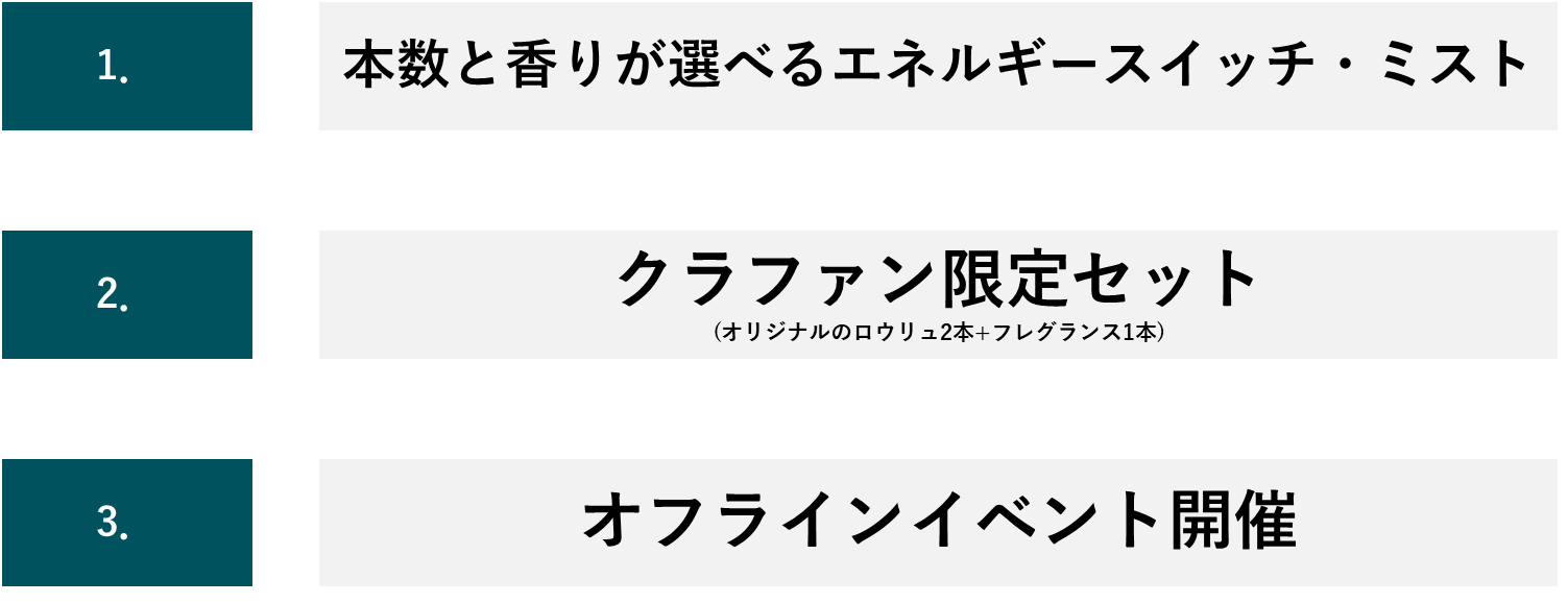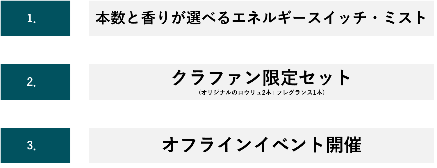 今回リリースする商品は「エネルギースイッチ・ミスト」3種類です。