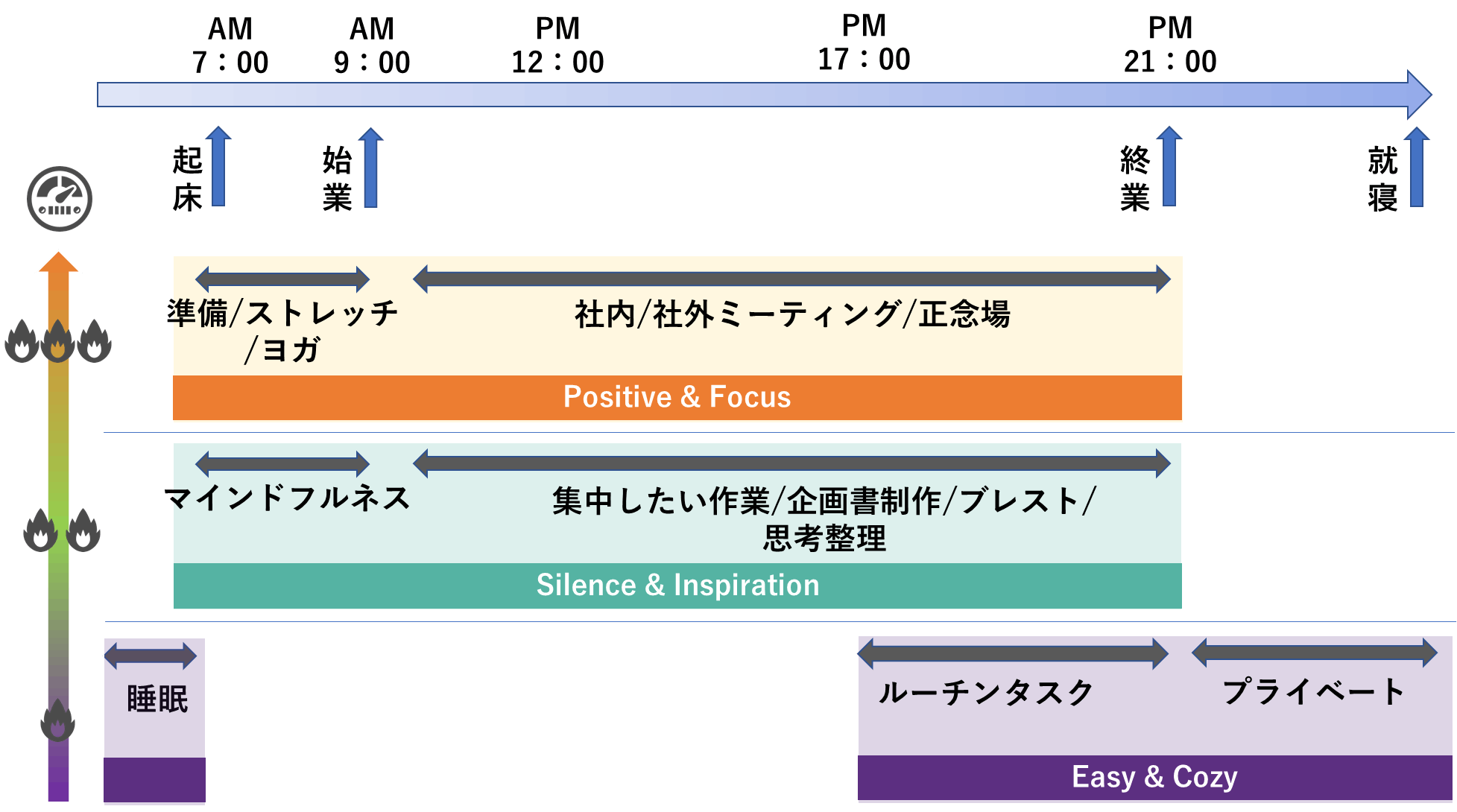 リモートワークが以前よりも一般化し、働き方に自由度が増しました。一方でON / OFFの切り替えや、「今以上にギアを上げる」「少し力を抜く」というサジ加減に対して課題に感じている人も少なく無さそうです。何を隠そうブランドを立ち上げるまでの私自身がIT業界に身を置き、リモートワークで感じた改善したいポイントだったのです。