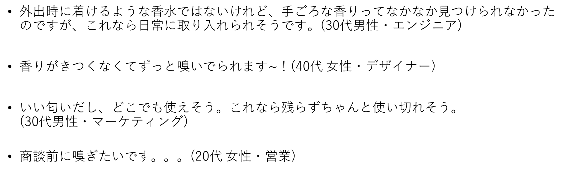 実際に香りを嗅いでいただいた方から一部、感想を抜粋させていただきました。