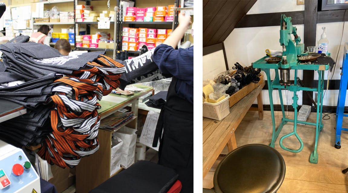 倉敷屋のデニム和雑貨は、裁断・印刷・縫製を全て自社で行い