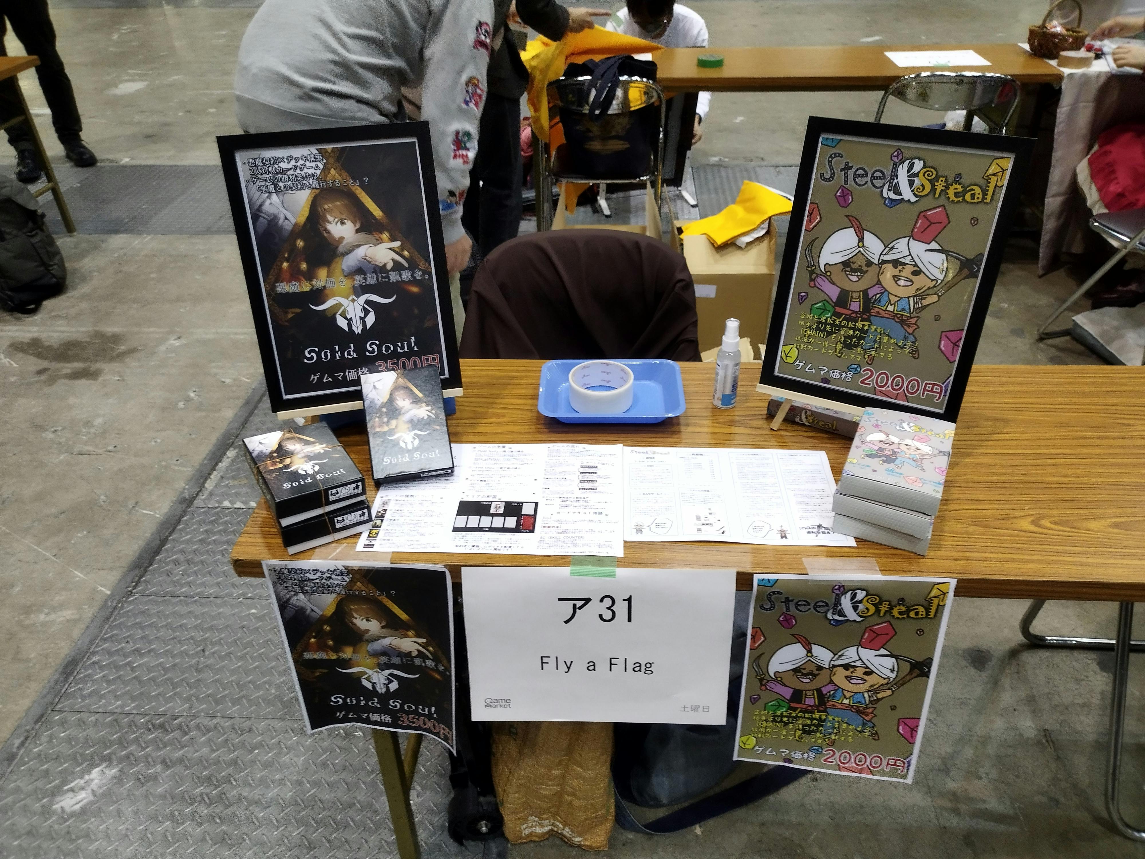 初めての出展のため、多大な緊張を感じていますが、1作目の『Steel&Steal』と2作目となる『Sold Soul』を持っていきたいと思っていますので、よろしければお手にとって遊んでいただけたらと思います!