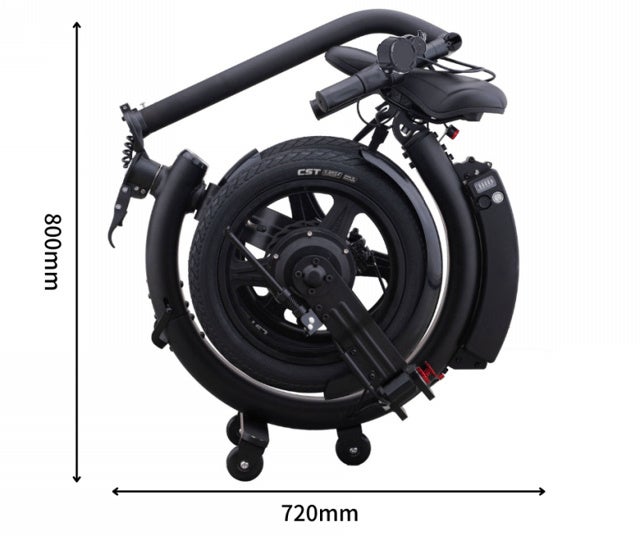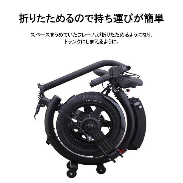 『折り畳み式フル電動バイク』キャリーバッグのようなキャスター付きで持ち運びもラクラク!で僅か「18㎏」の軽さと「折り畳み機能」で究極のコンパクトさを実現!僅か3.5時間の充電で最高速度23km/h、最大走行距離20kmを実現!公道もOK!
