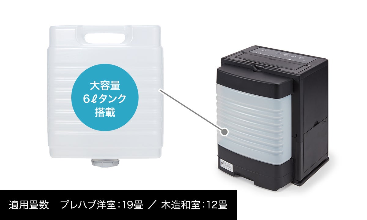 次亜塩素酸 気化式加湿器switle(スイトル)はタンクの容量を大きくし、約6リットルの水を入れることができます。