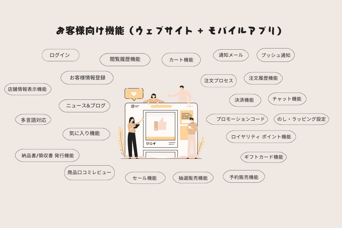 ▲お客様向け機能 ( ウェブサイト + モバイルアプリ )