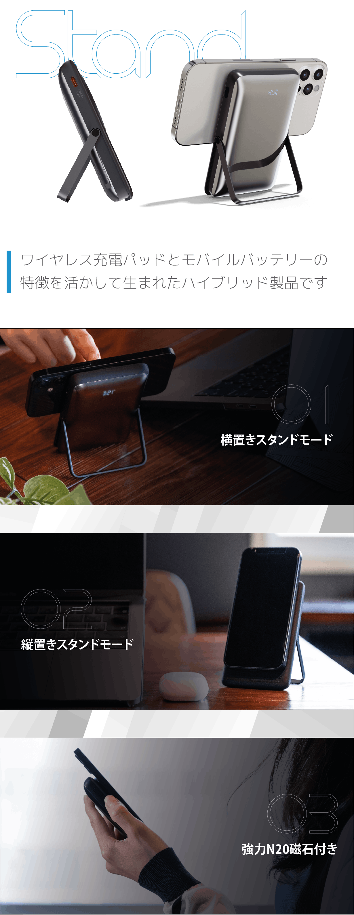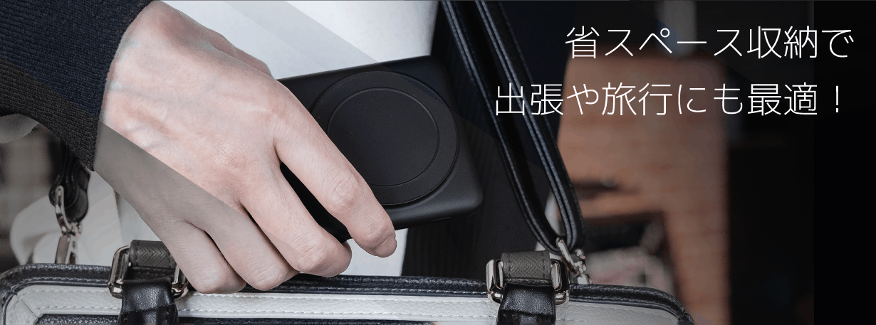 バッテリー自体がスタンドにもなるため、持ち運びだけでなく自宅用としても使えたり、