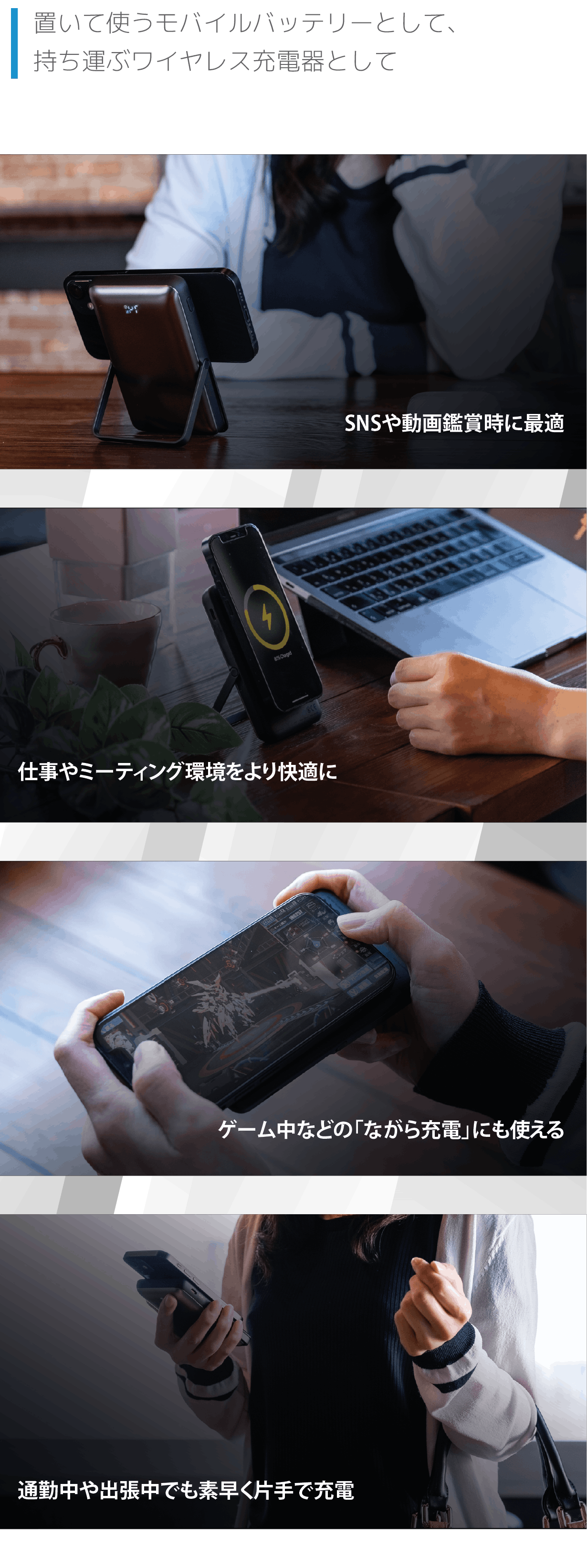 …などさまざまな場面で“ながら充電”が可能。