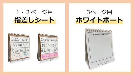 実際にノートラブルを使って頂いた方々からは、「指差しシートとホワイトボードがセットになっていて良い!」、「紙に書いて伝えると安心する」というような嬉しいお声を頂きました!