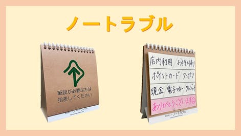 聞こえる方が、聞こえない方への接客場面で使用することで、コミュニケーションにおける課題を解決できる筆談具として、ノートラブルを開発しました!