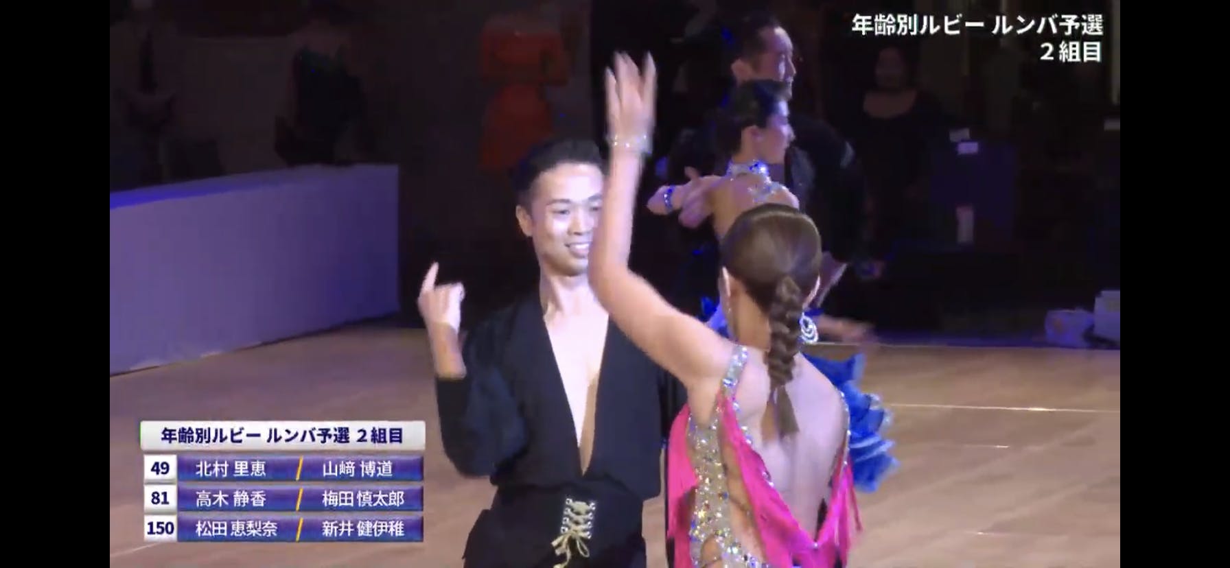 実施種目:ワルツ・タンゴ・ヴェニーズワルツ・スローフォックストロット・クィックステップ・チャチャチャ・サンバ・ルンバ・パソドブレ・ジャイブ