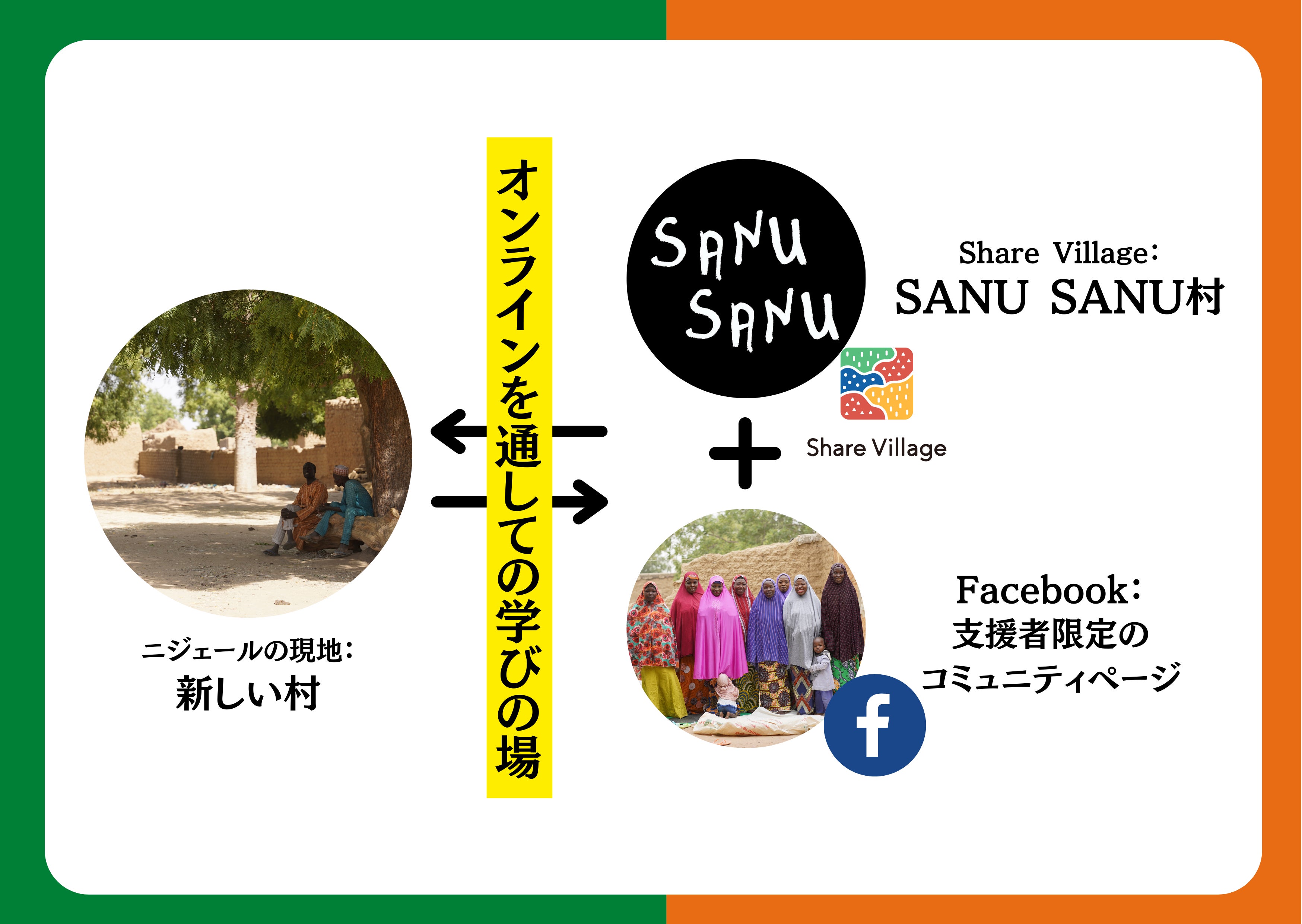 そして、日本側も一方的な支援にならないように、今後は、オンラインを使って、ただ支援をいただいたという形だけではなく現地からも、下記の、オンラインの流れとコミュニティ(村)を作って課題を解決し合いたいと思っています。