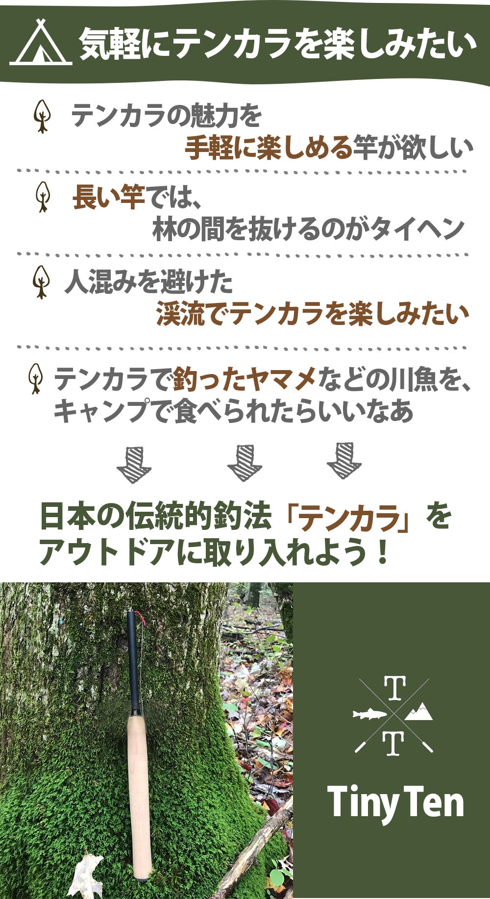 気軽に「テンカラ」が楽しめるTiney Tenは、クラウドファンディングで多くの支持を集めた実績があります。
