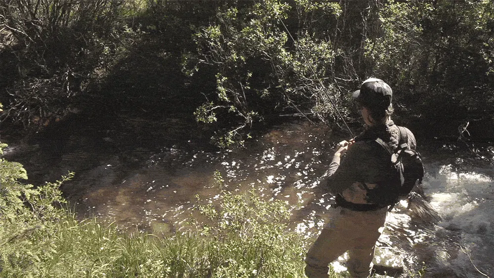 渓流釣りスポットに到着したら、Tiny Tenをスルスルっと伸ばして、さぁテンカラを楽しもう!