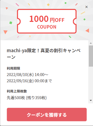 「machi-ya限定!夏の割引キャンペーン」をご活用くださいませ♪