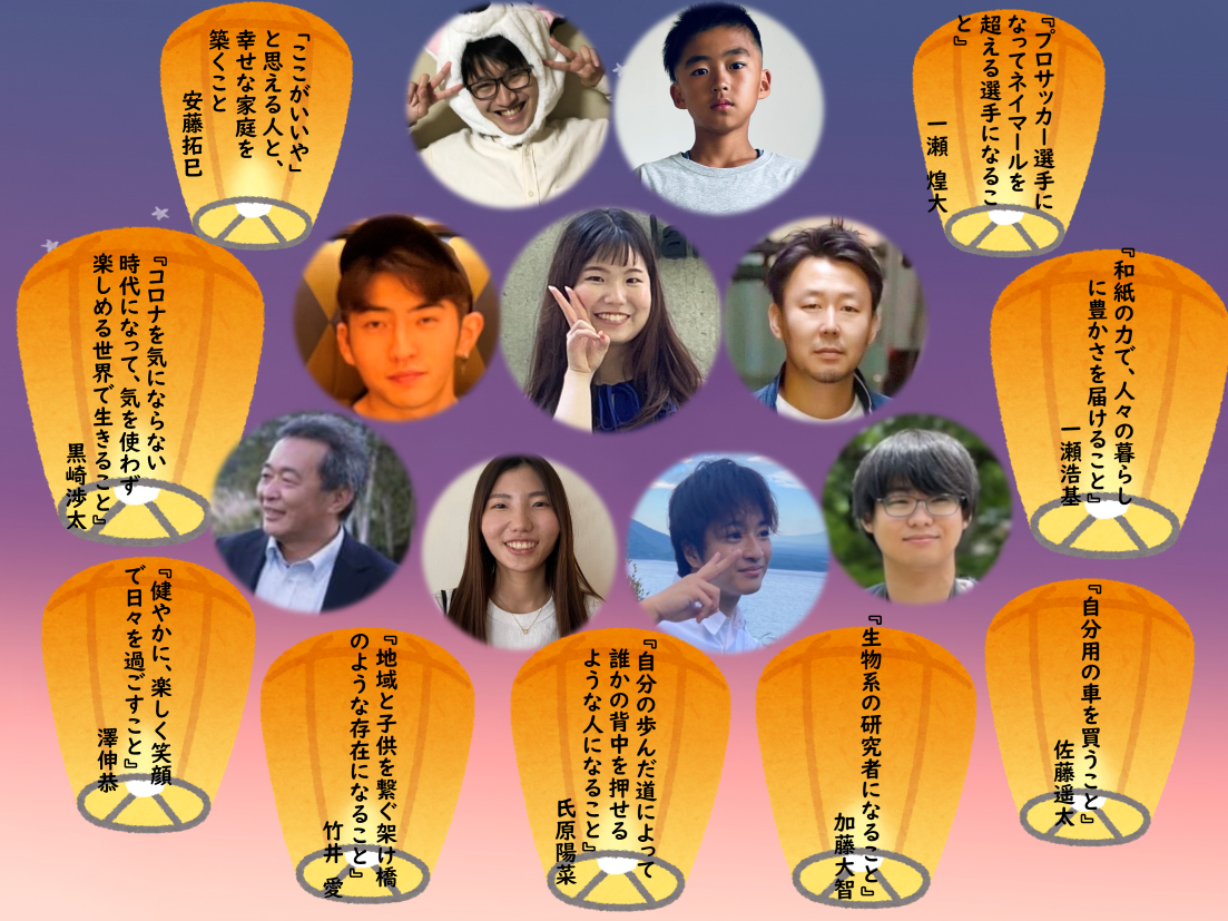私たち実行委員会は山梨県立大学の学生2名と、山梨大学の学生4名、金長特殊製紙和紙6代目跡取りの一瀬浩基(いちのせ こうき)さん、その愛息子の一瀬煌大(いちのせ こうだい)君、山梨大学特任教授の澤伸恭(さわ のぶやす)先生の計9人で構成されています。