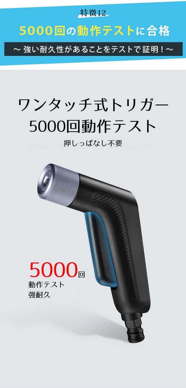 ワンタッチ式トリガーは、5000回の動作テストを実施し、強い耐久性があることを検証済み!