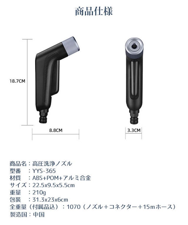 『電源不要でエコ』『パワフルな洗浄力』『超軽量で扱いやすく・収納しやすい』高圧洗浄ノズルを紹介します。