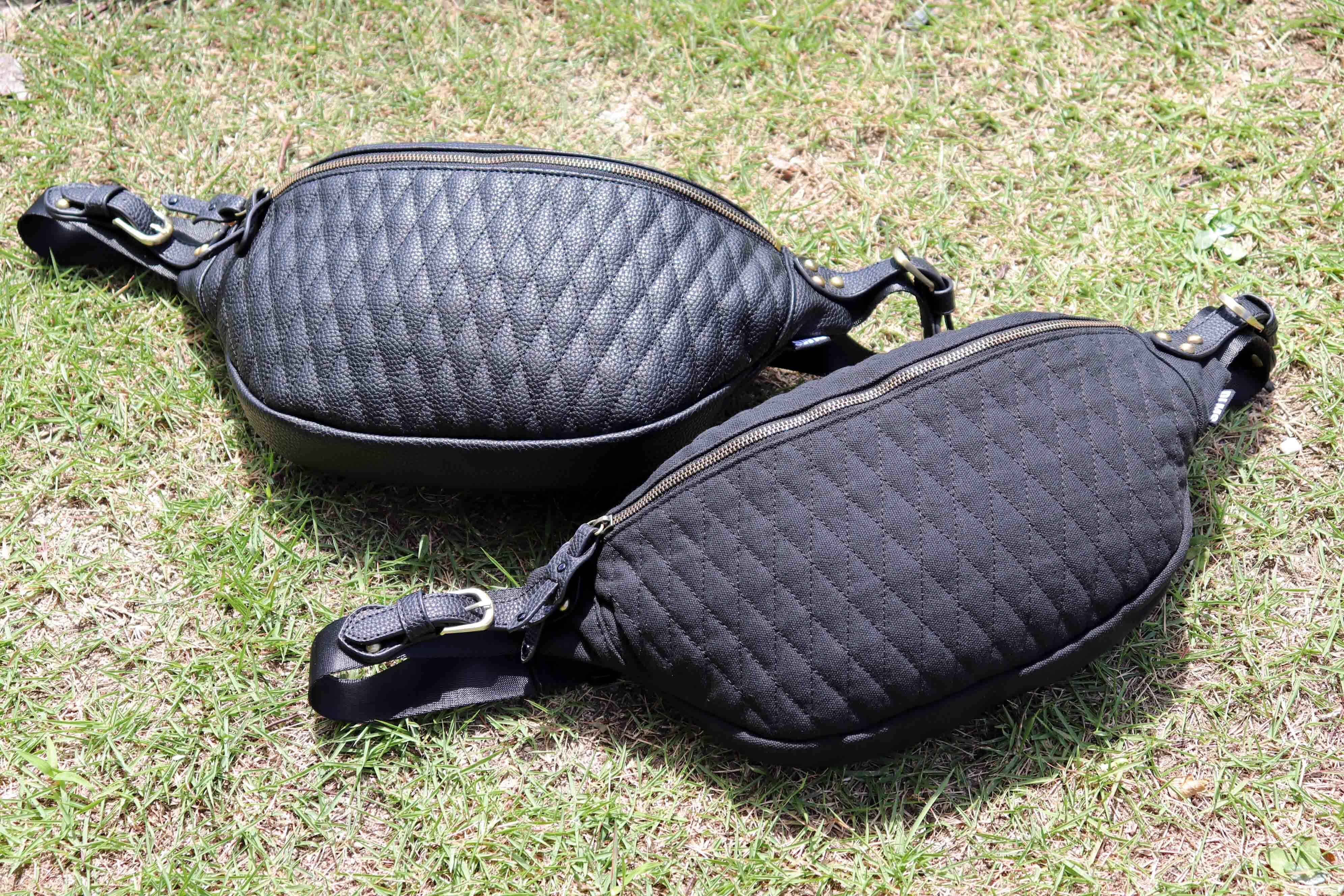 バッグの素材はヴィーガンレザー(マイクロファイバー革)とキャンバス(帆布)の2タイプのクロスボディバッグ。