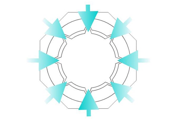 この8つの切込みは、実用的な意味もあります。この切込みにより、温度差が生じて対流現象が起きることで、まるで生きているように踊る魔法の炎が出現するのです。