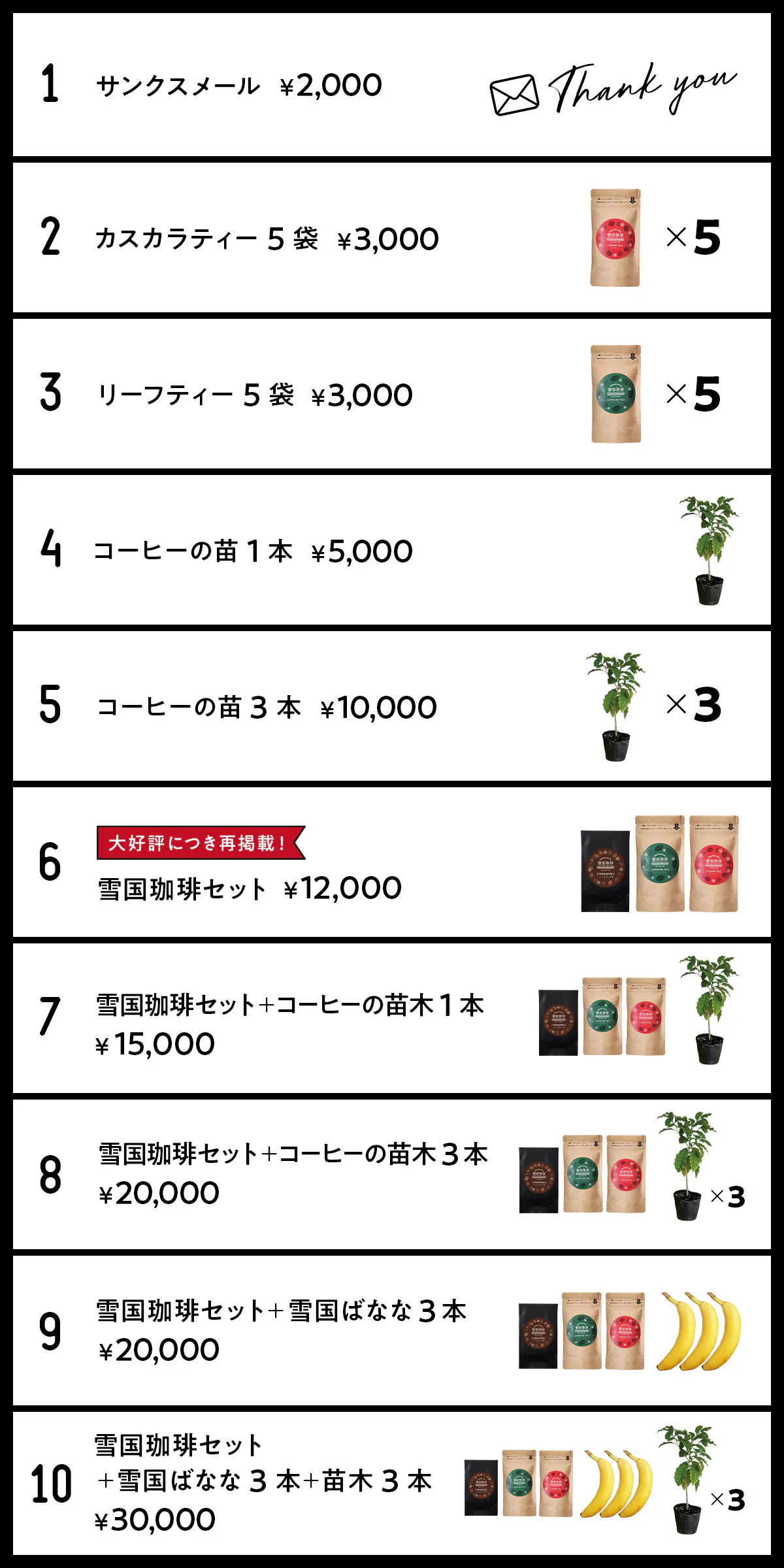 2022/10/25 16:22「雪国でのコーヒー栽培を軌道にのせ、秋田県美郷町に新たな産業をつくりたい!」プロジェクトオーナーのmisato1234です。この度はご支援いただきまして誠にありがとうございます。本日よりご支援いただきました皆様へリターン品の発送を開始いたしました。リターン品につきましては商品が完成次第、順次発送させていただきます。改めて、ご支援いただきまして誠にありがとうございます。今後とも、どうぞよろしくお願いいたします。 もっと見る