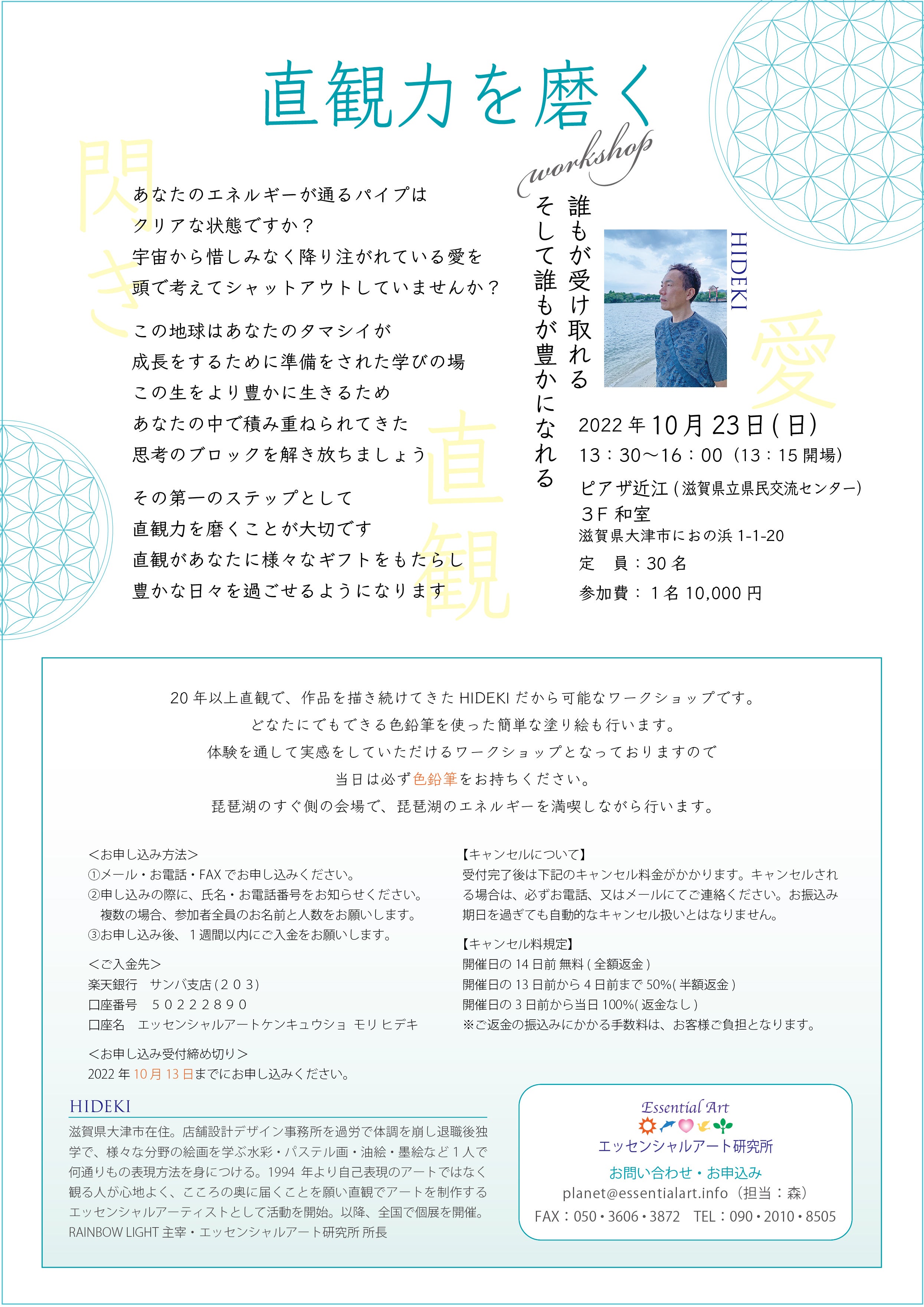 2022/09/28 11:34皆さま、私のページをご覧いただきありがとうございました。ご支援をくださった方心から感謝を申し上げます。私が絵を描く上で大切にしている「直観」を使うということは誰でも練習をすればできるようになります。ココポイント!です。直観・閃きはこれまで多くの偉人といわれる方々が努力という礎がありきですが発明や文明の進化に向けて貢献をしてこられました。私たち一人ひとりが直観を大切にした生活を過ごしていたら世の中はもっと思いやりに溢れたものになっていくのかもしれません。そんなことを純粋に思える方が一人でも増えていただけることに私のワークショップが役に立てたらどれだけ幸せなことでしょう。お問い合わせは以下のメールにお願いします。hym@planet-rainbow.net もっと見る