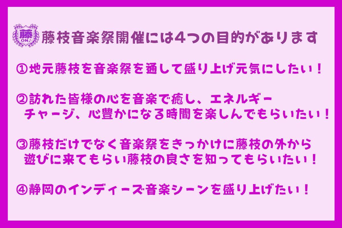 藤枝の若い世代の人たちの力づけになったり、藤枝の音楽シーンを盛り上げたい!