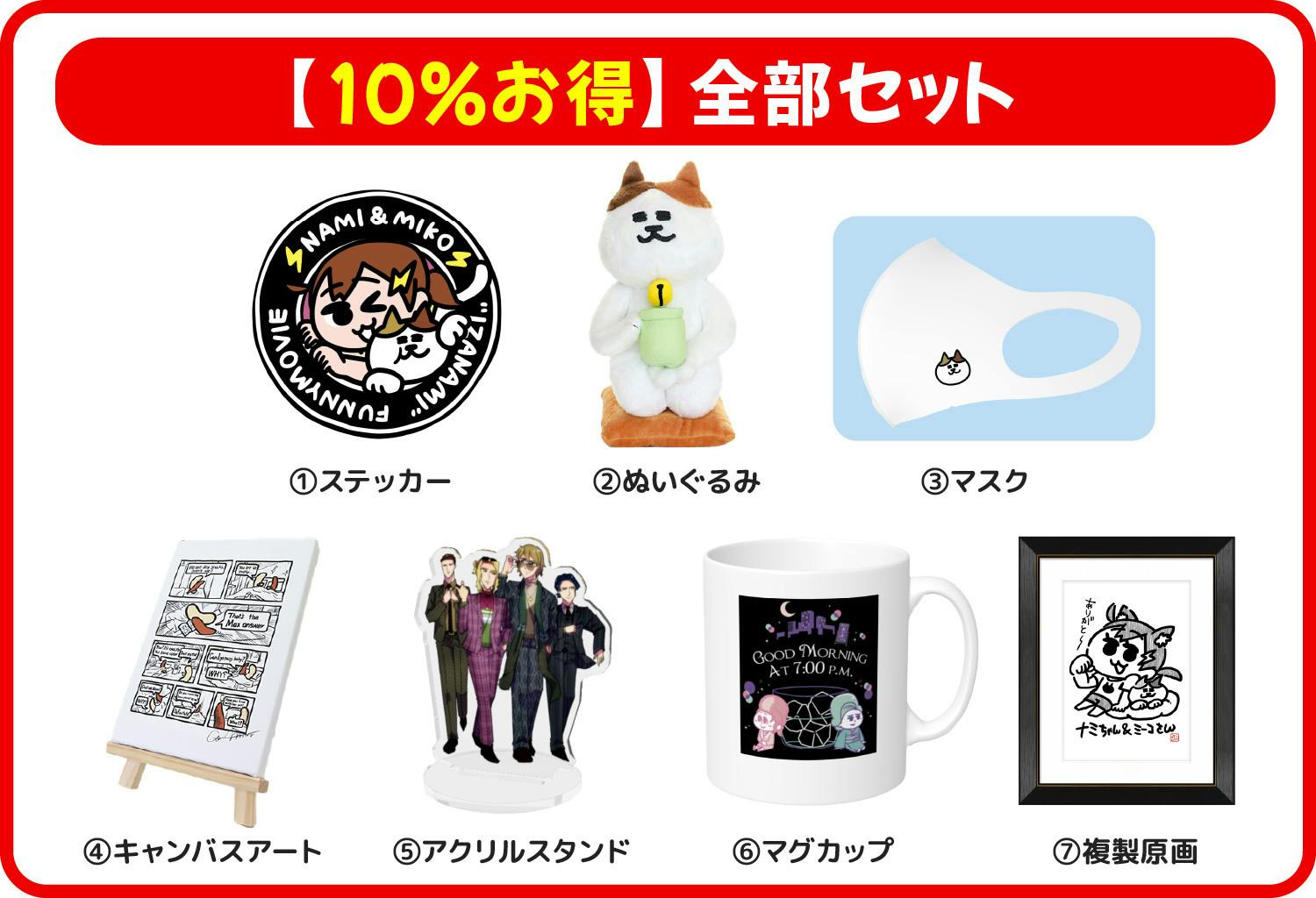 ぬいぐるみも含めたグッズ全部セットは価格が"10%OFF"とお得ですよ〜!
