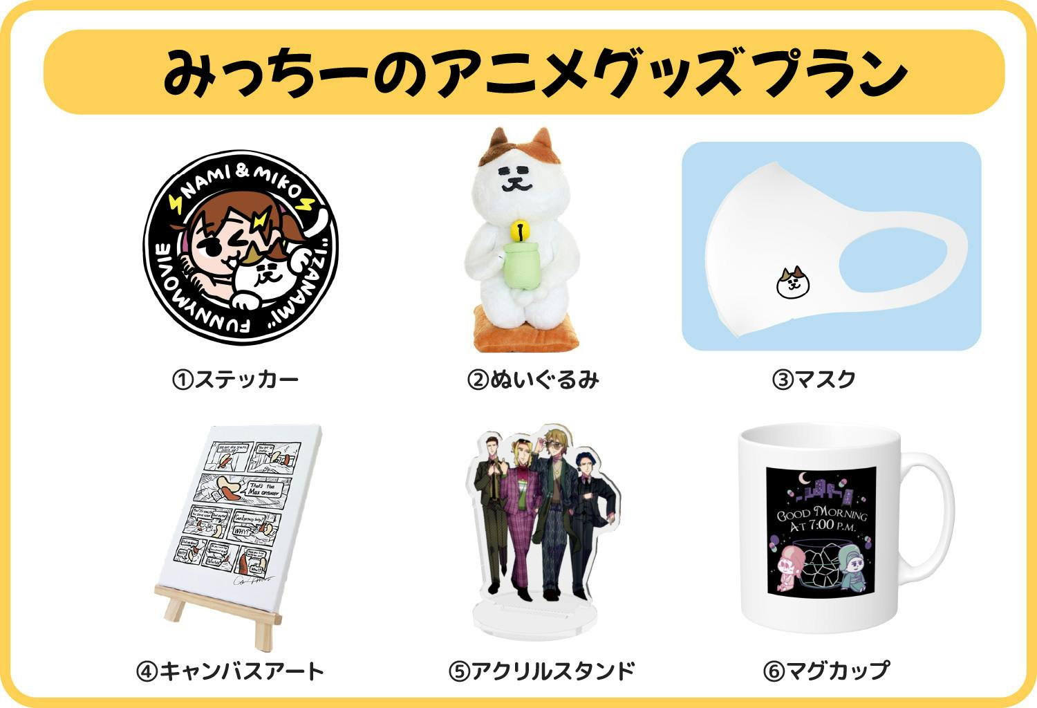 みっちーのアニメをテーマにしたグッズも手に入るプランもございます。