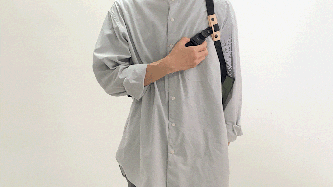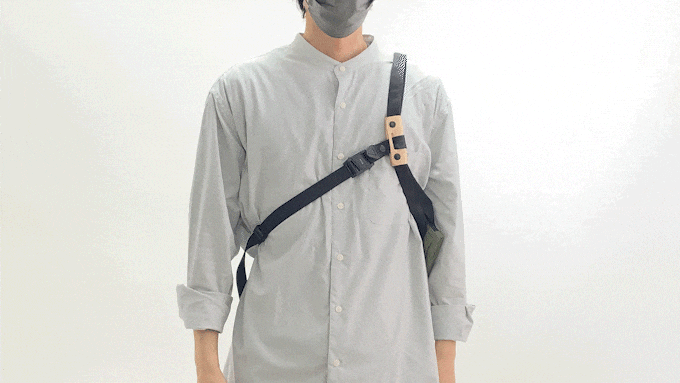 それは会社からの帰り道、トートバッグを肩にかけたまま坂道を自転車で下っていた時の事です。突然、肩から滑り落ちたトートが自転車の前輪に挟まって転倒、背中を強打。とても痛い思いをしました。ファッション性と使い易さから、普段からトートバッグを愛用していましたが、この転倒を経験して以来、自転車に乗りながらの使用に恐怖を感じ、控えるようになりました。かといって、中身を取り出すのに着脱が必要なリュックや、本や書類があまり入らないメッセンジャーバッグやワンショルダーは、自分としてはイマイチ。「身体に固定できるトートバッグ」があれば、と考えるようになったのは、その頃からでした。そして、トートバッグのデザインはそのままで、ストラップによって簡単に身体に固定ができ、安全に自転車に乗る事もできて、両手も自由になる「固定式トートバッグ」を思いつきました。試作品を実際に使ってみると、これまでのトートと異なり、両手が自由になるばかりか身体への負担が少ないことも実感。固定することで荷物の「揺れ」も軽減され、ラクに感じることがわかりました。そして、生体力学の准教授の協力のもと、試行錯誤を繰り返し、約8年の歳月をかけて完成。