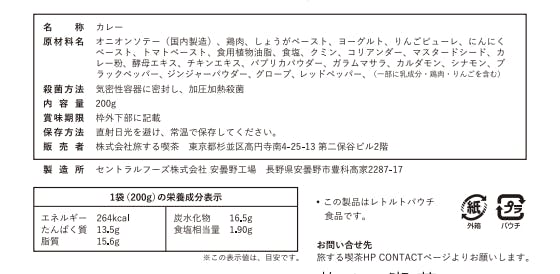 スパイシーで素材の味わいを活かした旅する喫茶オリジナルのレトルトカレーを是非ご賞味ください。