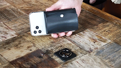 ※マウントを用いて財布とスマホをドッキングする仕組みのため、スマートフォンの機種や専用のケース等の縛りがなく、お使いのスマホへすぐに装着が可能です。(ただしケース素材と取付用マウントの貼付け相性があるため、スマホケースの種類によっては財布とスマホを取り付けれない場合があります。詳細はページ下部のご使用上の注意事項をご参照ください)