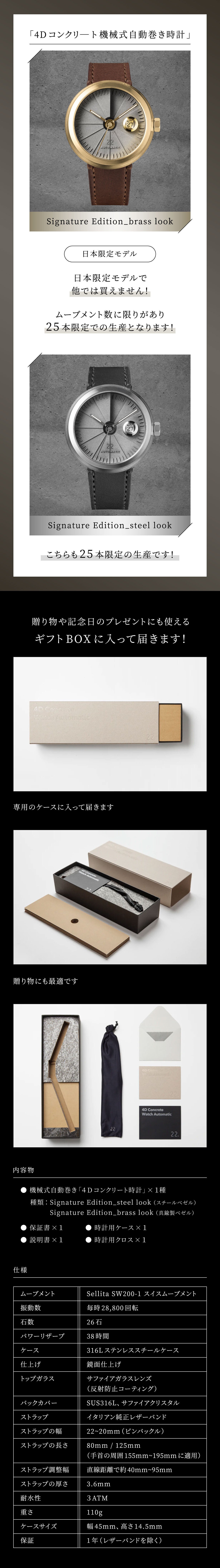 2023/01/25 17:07こんにちは!OKIAMI株式会社です!いよいよプロジェクトも残る所3日となりました!最大割引率のリターンも残り1個となっております。今月は新年会シーズンということもあり会食の場にでることも多かったのですが、「その時計カッコいいね」「珍しい時計してるね」「どこで売ってるの?」とSignature Edition steel look を付けていて会話のきっかけになりました・・・腕時計は権威的な象徴だったり、コミュニケーションの発信源だったり、機能的な側面だったり色んな面があると思うのですが、この時計は圧倒的珍しさとかっこよさで話題の中心に!ぜひ、唯一無二のコンクリートウォッチをこの機会に手に入れませんか?機械式のこのモデルは今回のプロジェクトだけの受注生産になるので一般販売は致しません!購入できるのは残り3日となりますのでぜひご検討ください! もっと見る