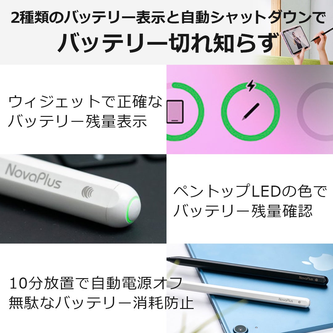 Nova Plus⁺ pencil は、低消費電力と省エネルギーバッテリーを所有し、長期間の待機、使いたいときだけすぐに目覚めます。Nova Plus⁺ pencil はあなたのiPadの生産性を強力にバックアップしてくれます。