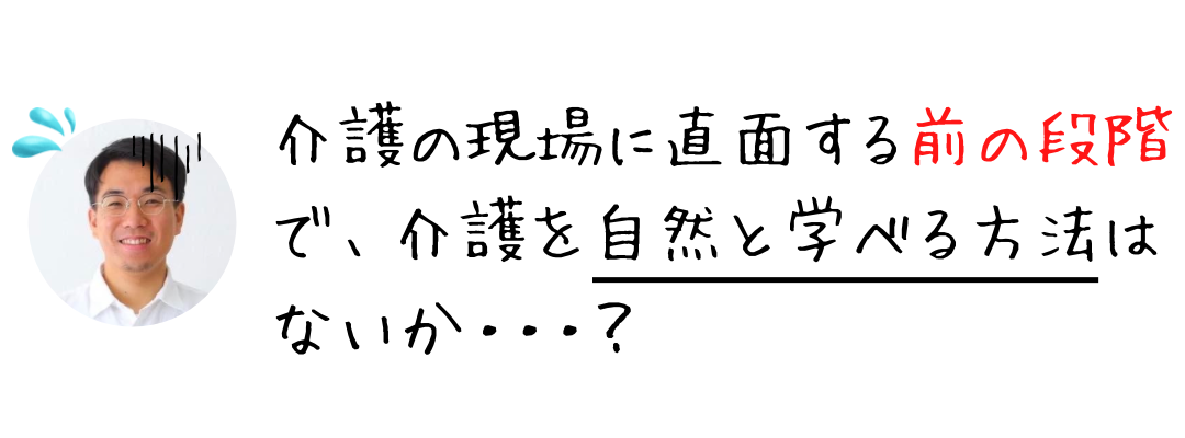 ではその前の段階の、介護の現場に直面する一歩手前で、介護を自然と学べる方法はないか?