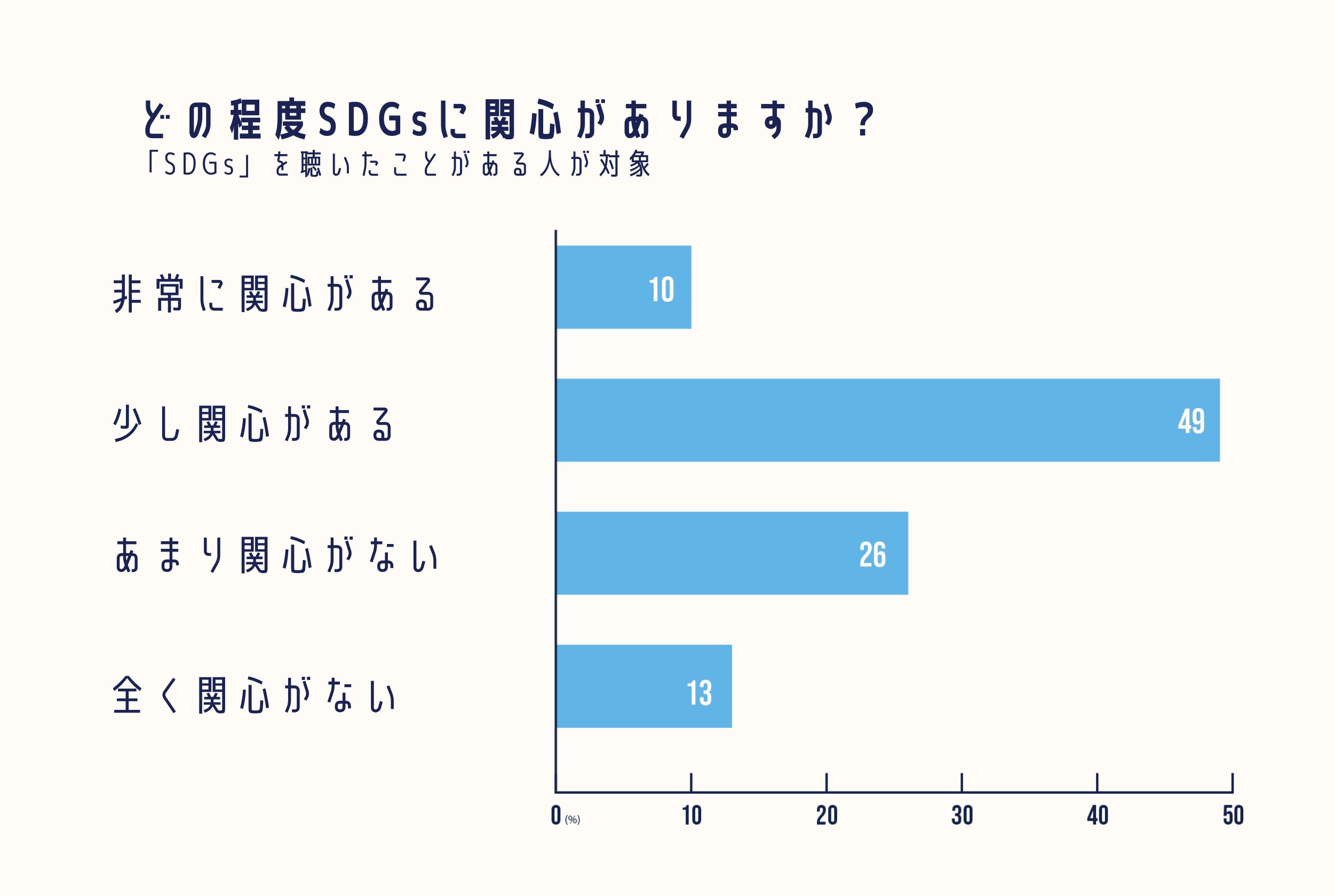 聞いたことがある」と答えた人の中で、SDGsにどの程度関心がありますか。という質問に対して、非常に関心がある と答えた人はわずか10%でした。