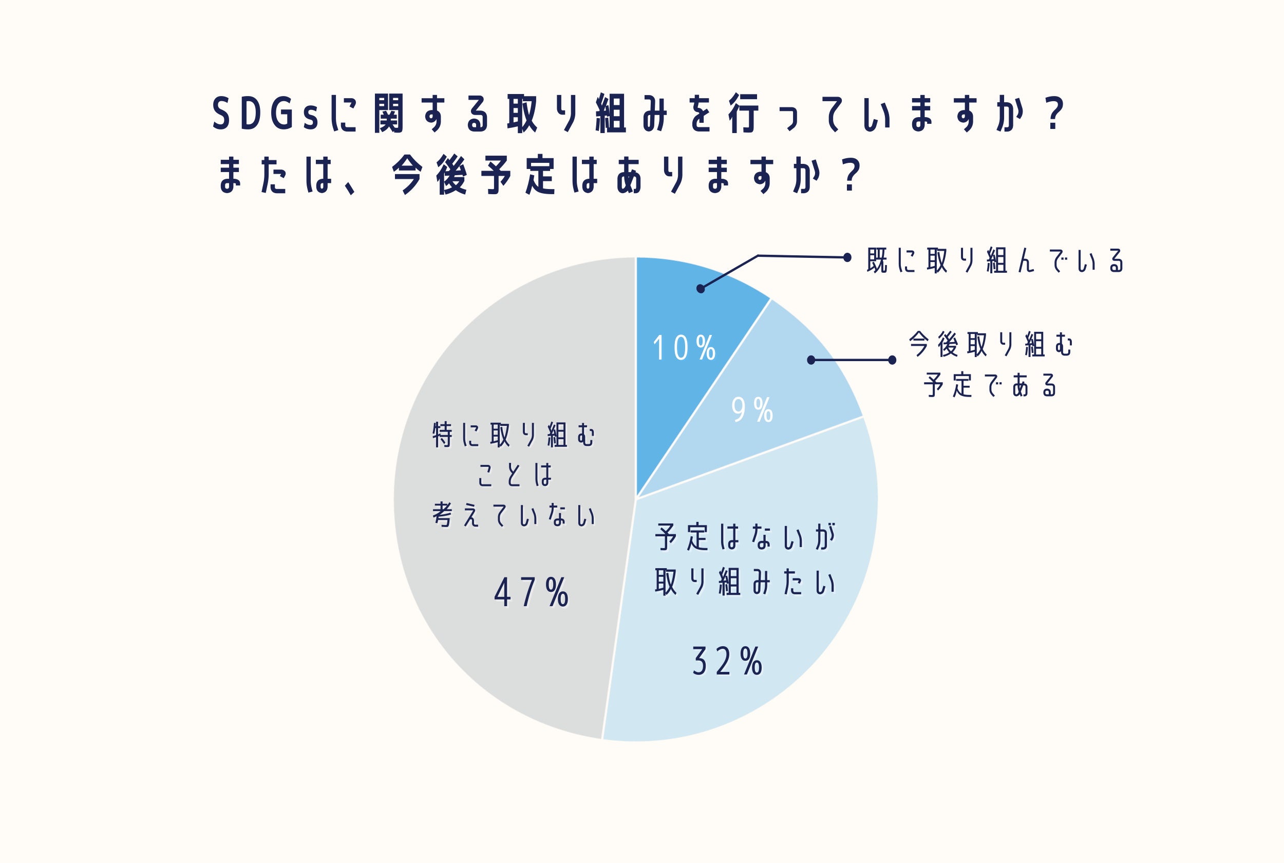 また、SDGsに関する取り組みを行っていますか、取り組みたいと思いますか。という質問に対して既に取り組んでいると答えた人は10%でした。