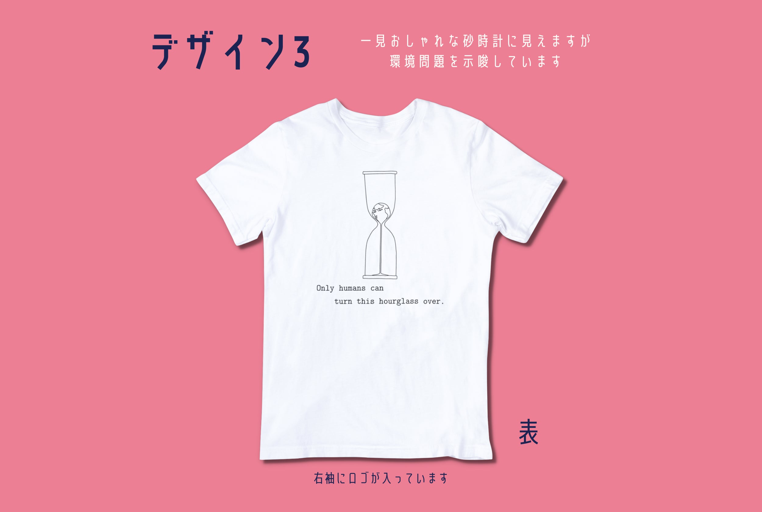 タンブラーには「Only humans can turn this hourglass over. (訳:この砂時計をひっくり返すことができるのは人間だけ) 」という文字とともに、地球の環境問題をテーマにしたイラストをデザインしました。