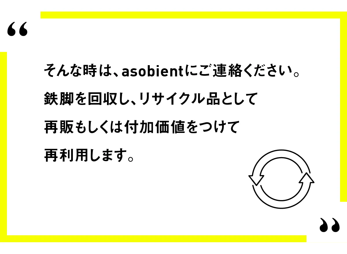今までは使命を終えて廃棄されていた足場板を、アイアンラックの天板としてリユース。