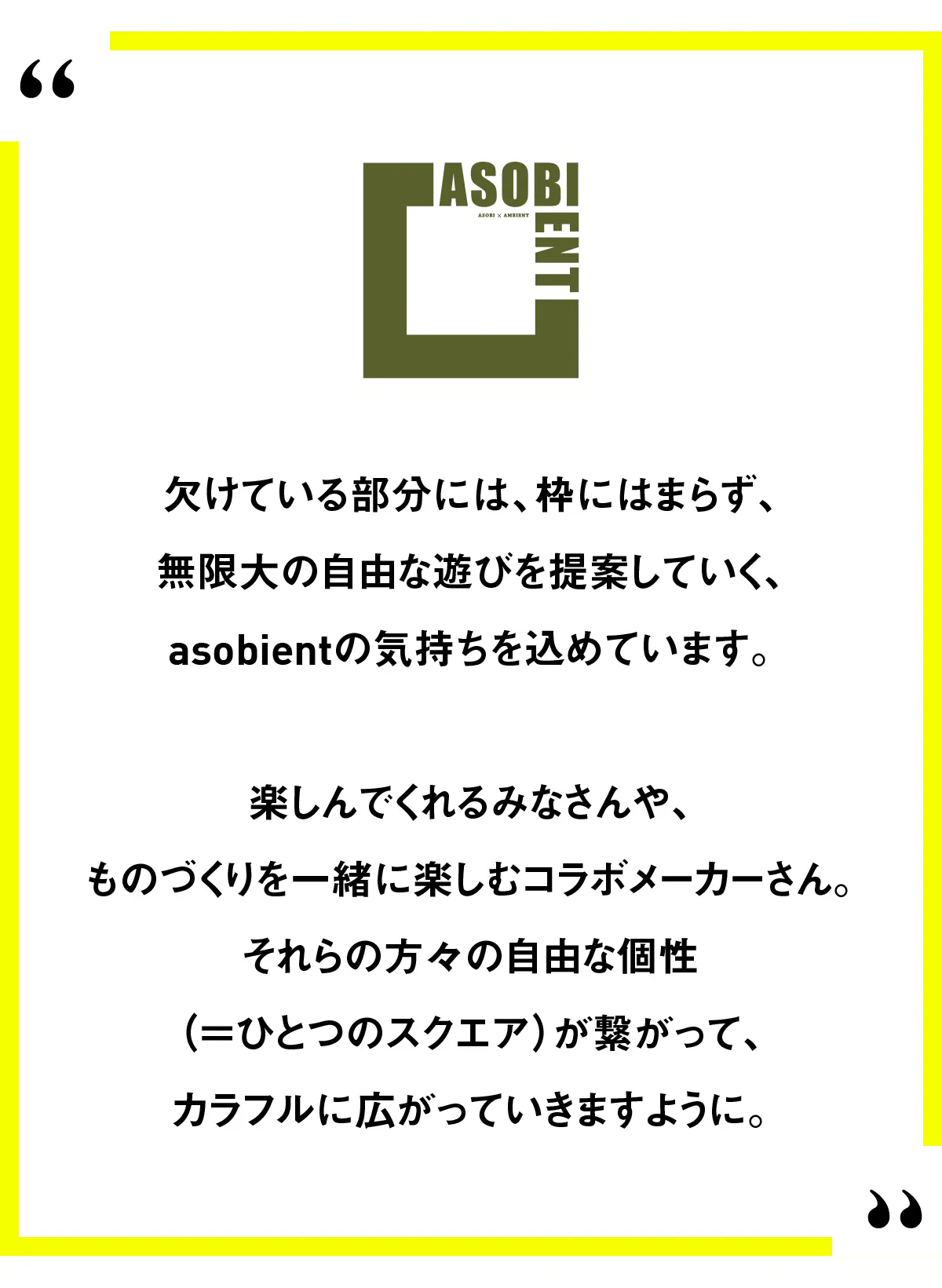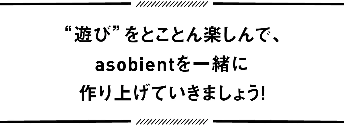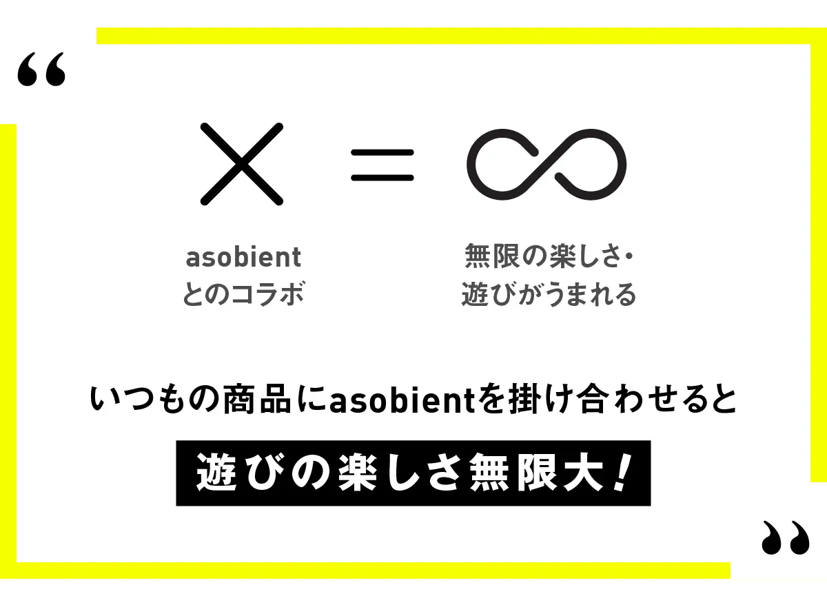 メッセージロゴには、asobientと一緒に、楽しさの可能性をどんどん広げてほしいという願いが込められています。