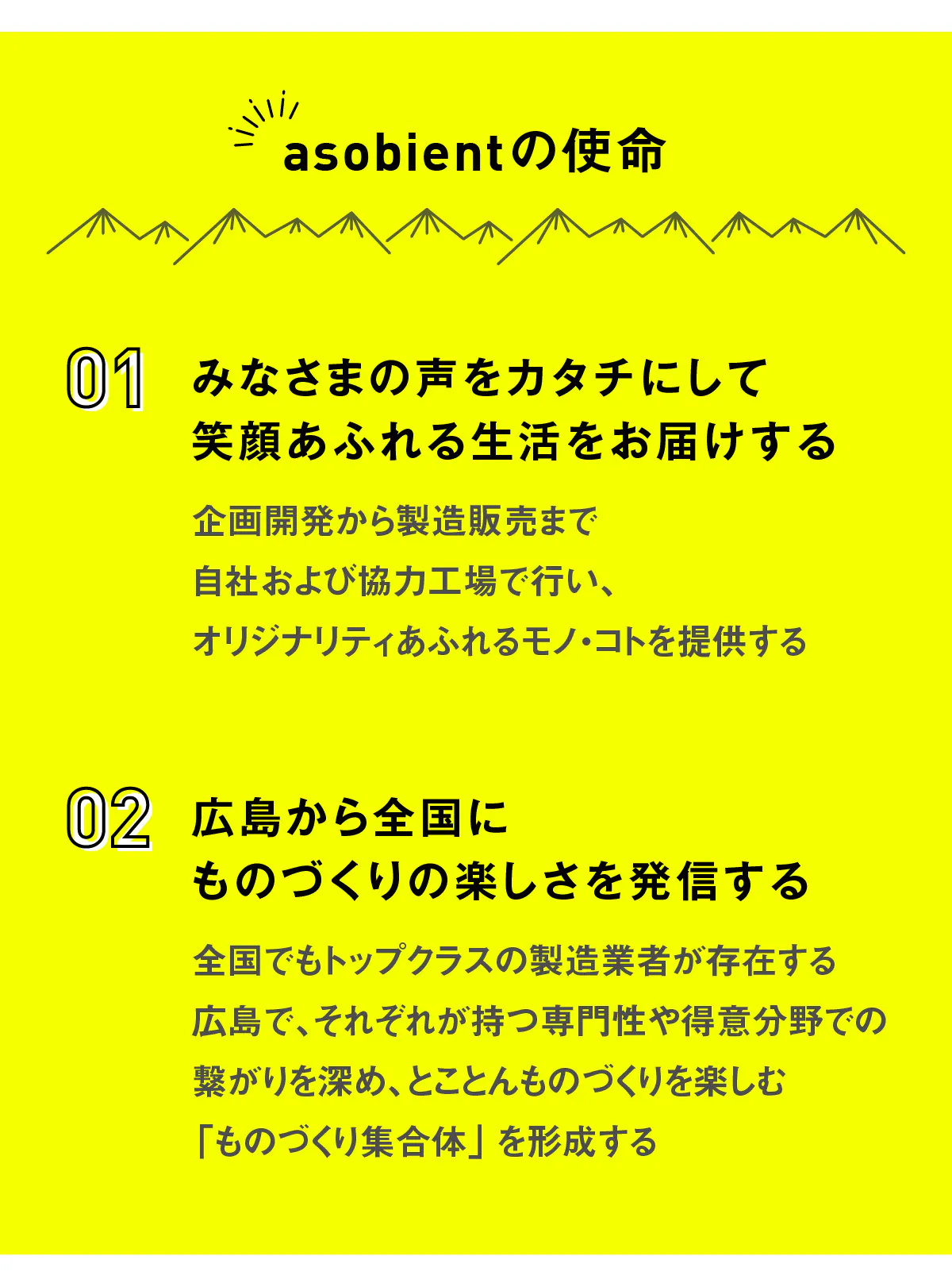 asobientが製造業者の独自分野や得意分野の架け橋となり、ここ広島から、とことんものづくりを楽しむ「ものづくり集合体」を作っていきます!