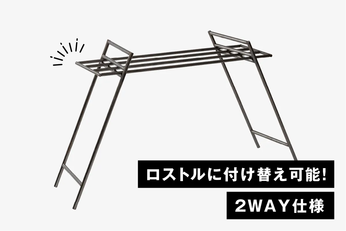 また、足場板の天板を外してロストルに付け替えれば鉄脚だけでも使用できる2WAY仕様になっています。