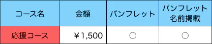 当演奏会事業の趣旨に賛同し、最小限のリターンを希望される方を対象としたリターンコースです。パンフレットにお名前を掲載し、9月下旬に送付致します。