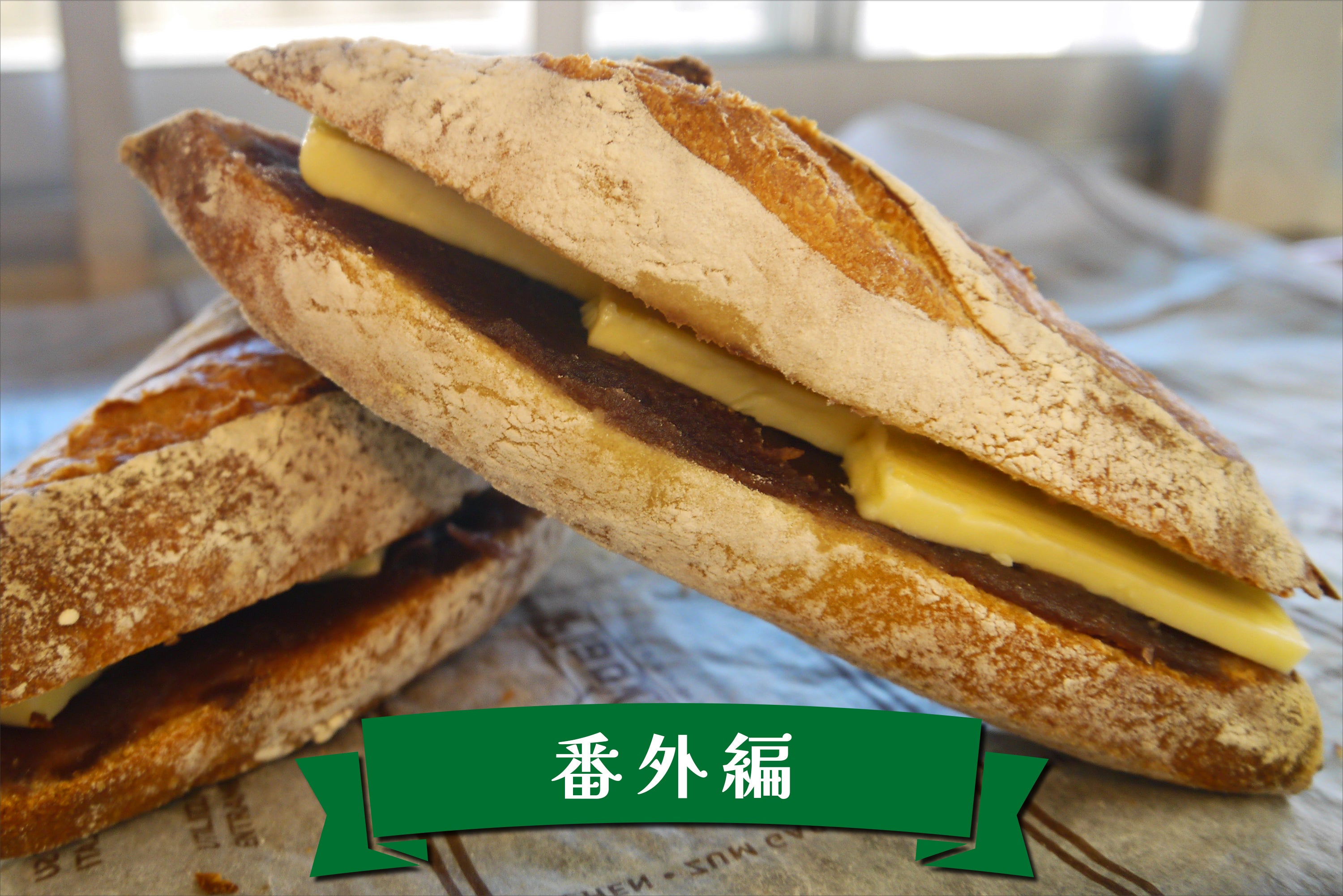 北海道十勝の華粉を使ったバケットの形を変えこしあんに口どけのよいフレッシュバターをはさむことで口に入れフランスパンなのに一口ごとにすっと体に入り込むうま味。やっぱり粉のうま味でしょうか?