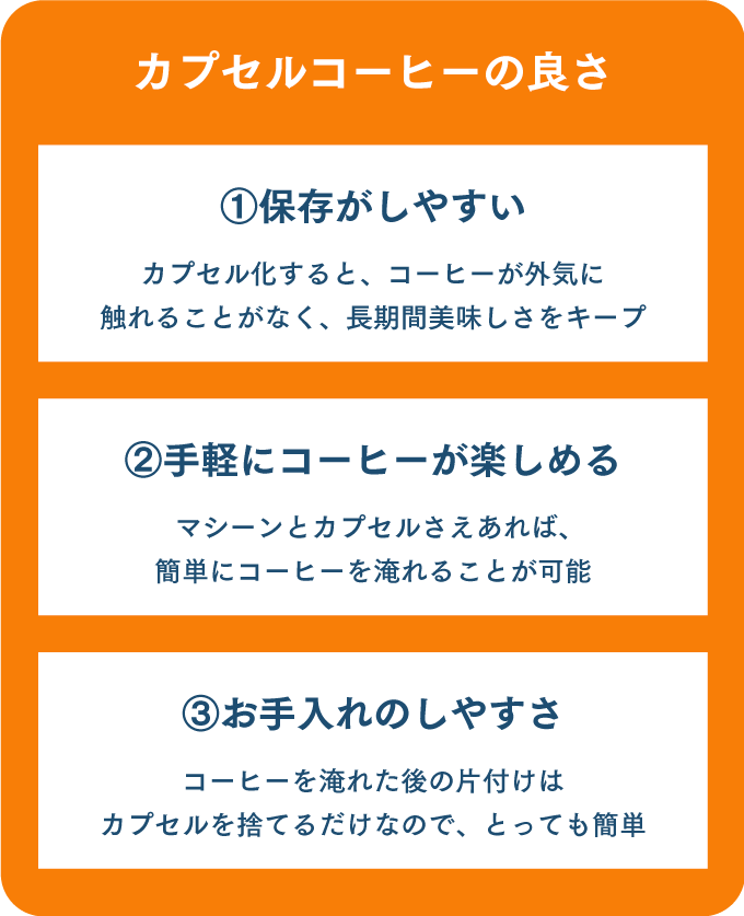 カプセル式コーヒーが、おうちやオフィス等で楽しまれている理由を見ていきましょう。