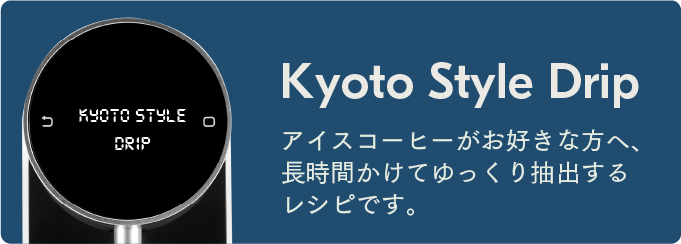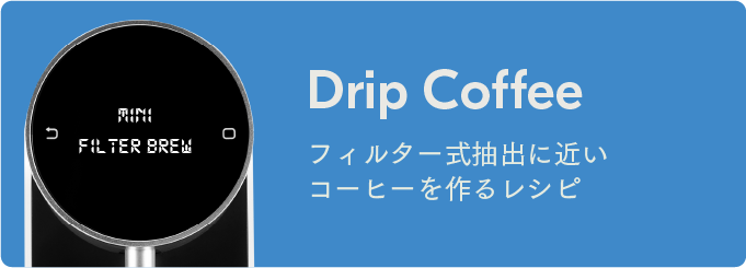 このレシピは浅煎りされたコーヒーに適していて、紅茶のような軽やかなボディ感(コク)と、豆のアロマやフレーバーをよりお楽しみいただけます。抽出量:45g